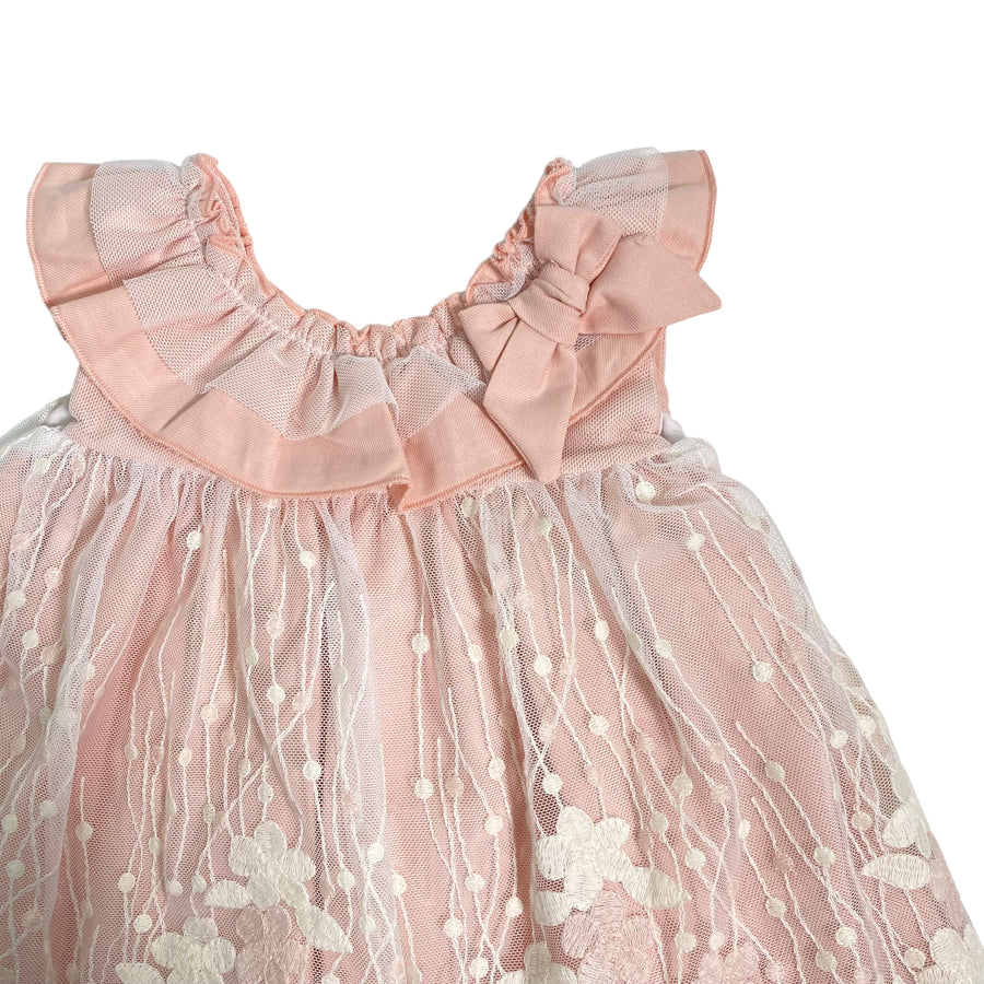 Abito Smanicato Con Culotte In Tulle Rosa Neonata Valentina Bebes KTM3