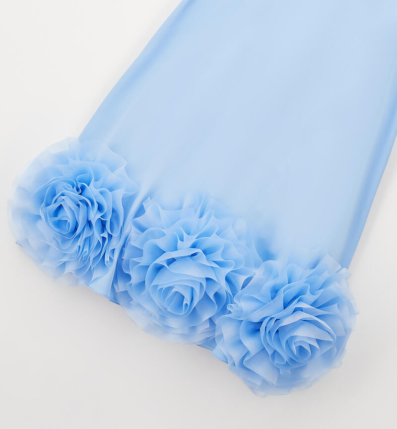 Abito elegante per ragazza Sarabanda realizzato in satin con applicazione sul fondo in organza. Inserto in tulle nel sotto gonna. Fodera in cotone. Apertura dietro con zip invisibile e fiocco dietro. Lunghezza sopra al ginocchio. Il modello fa parte della collezione Sarabanda Premium pensata per vestire le cerimonie più formali.