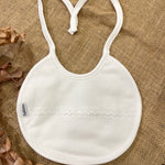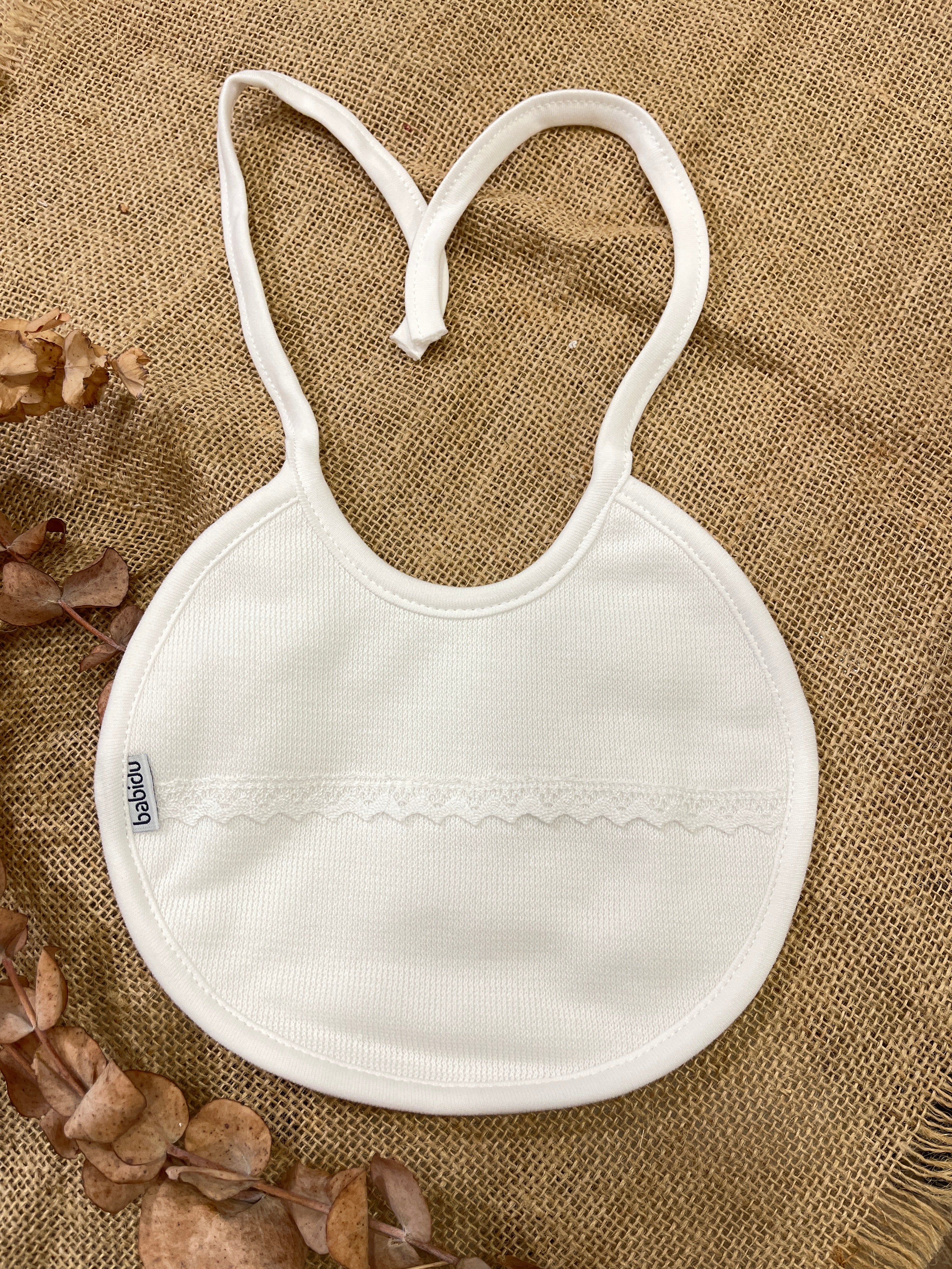 Questa bavetta singola in spugna tinta unita della marca BABIDU è perfetta per il neonato o la neonata. Con un merletto orizzontale centrale, aggiunge un tocco di eleganza e praticità alla quotidiana pulizia. Assicura comfort e morbidezza mentre mantiene il bambino/a pulito/a.