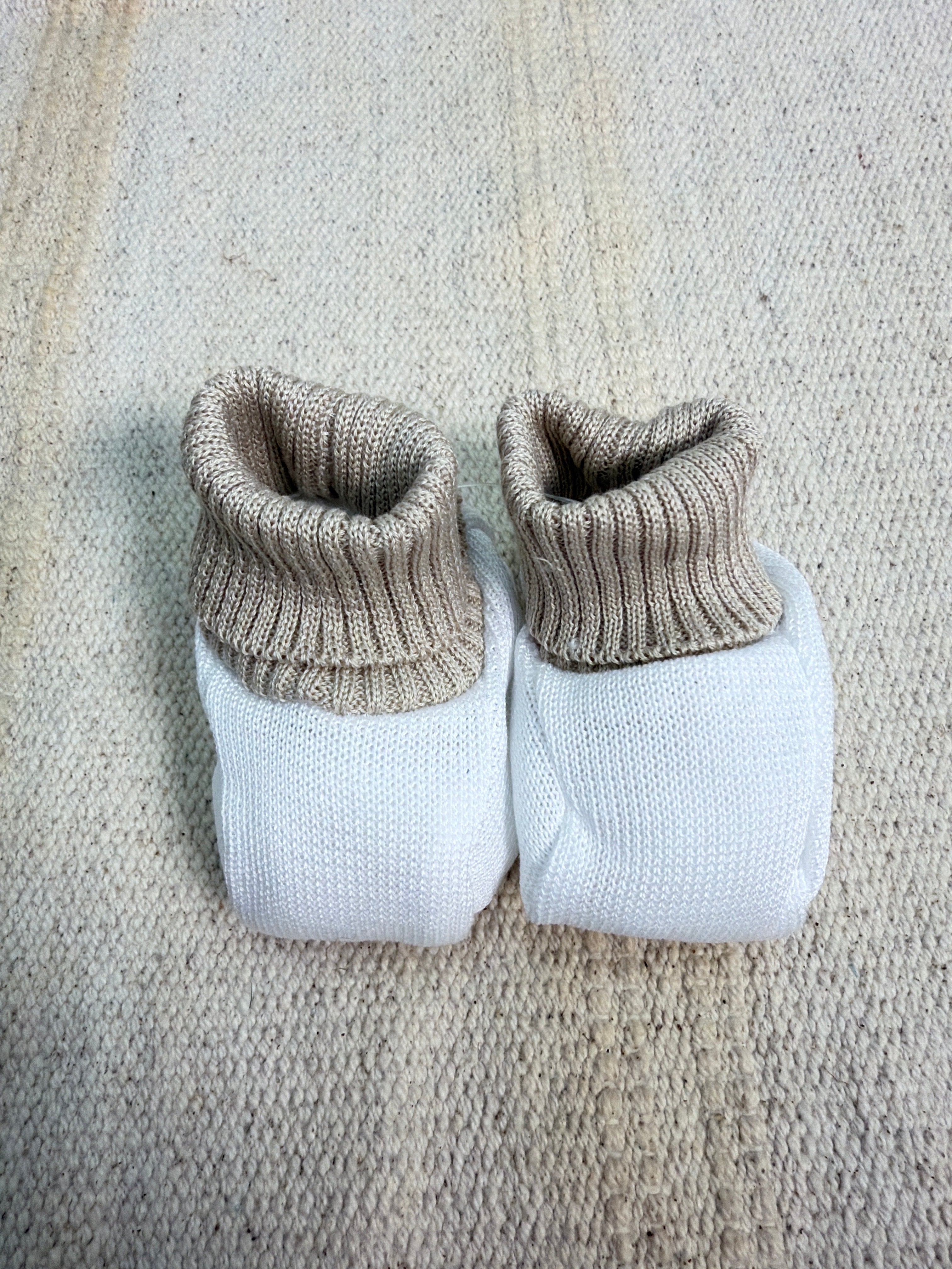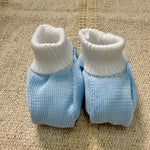 Delicati calzini-scarpetta realizzati in puro filo di cotone, perfetti per i neonati. Il design a scarpetta offre una vestibilità sicura e confortevole, mantenendo i piedini caldi senza costringere. Ideali per i primi mesi di vita, questi calzini combinano morbidezza e praticità, permettendo al bambino di muoversi liberamente. La qualità del cotone garantisce traspirabilità e delicatezza sulla pelle sensibile del neonato. Un accessorio essenziale per il guardaroba del vostro piccolo.