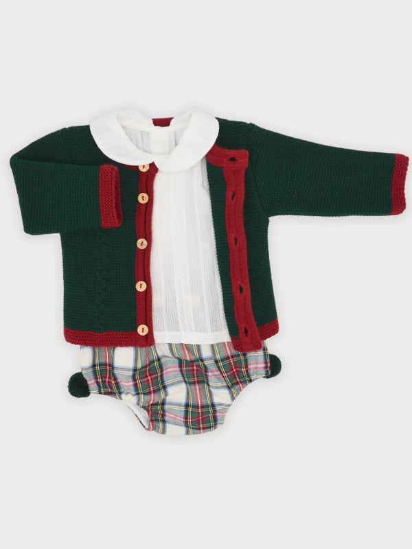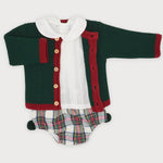 Questo elegante completo neonato composto da tre pezzi include una culotte scozzese con pon pon, una camicia con collo tondo e un cardigan in acrilico morbido e caldo. Perfetto per le feste natalizie, unisce stile raffinato e comfort, garantendo al tuo bambino un look alla moda e adatto alle occasioni speciali.