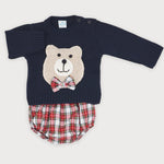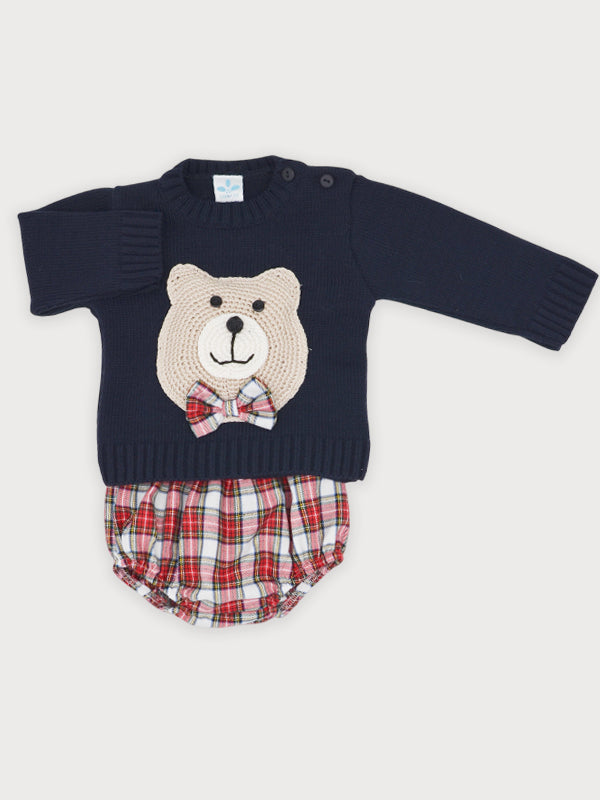 Questo completo neonato unisce una culotte scozzese raffinata a un maglioncino in morbido acrilico con motivo teddy, ideale per le festività natalizie. L’insieme garantisce comfort e calore, offrendo un’eleganza classica adatta ai momenti speciali dei più piccoli. Perfetto per chi cerca un outfit di qualità che unisce stile e praticità.
