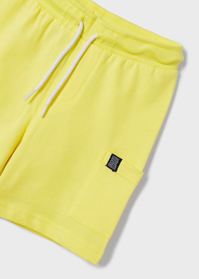 Capo ECOFRIENDS contiene cotone organico. Pantalone corto modello bermuda per bambino. Vita elasticizzata con cordoncino regolabile. Tasche laterali.