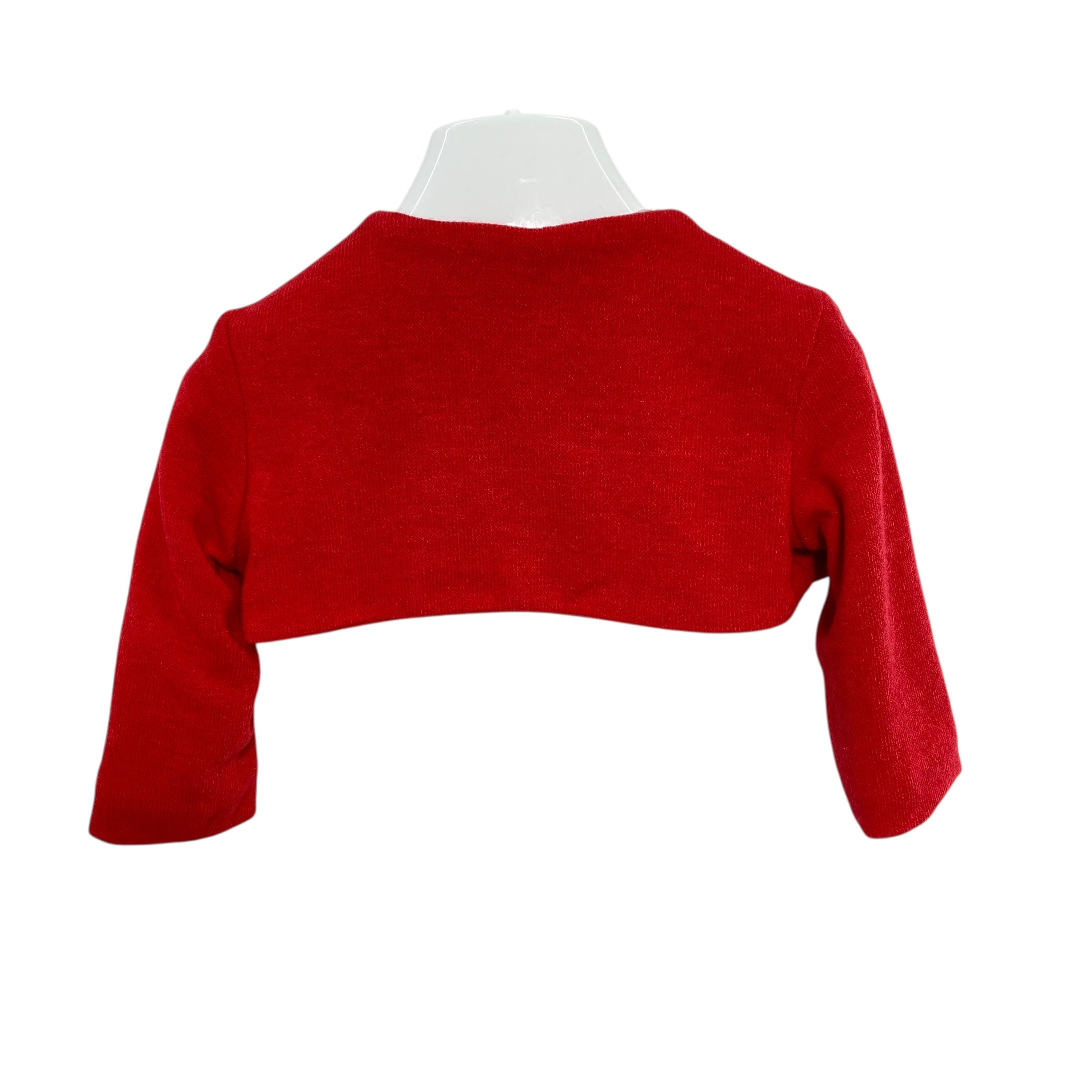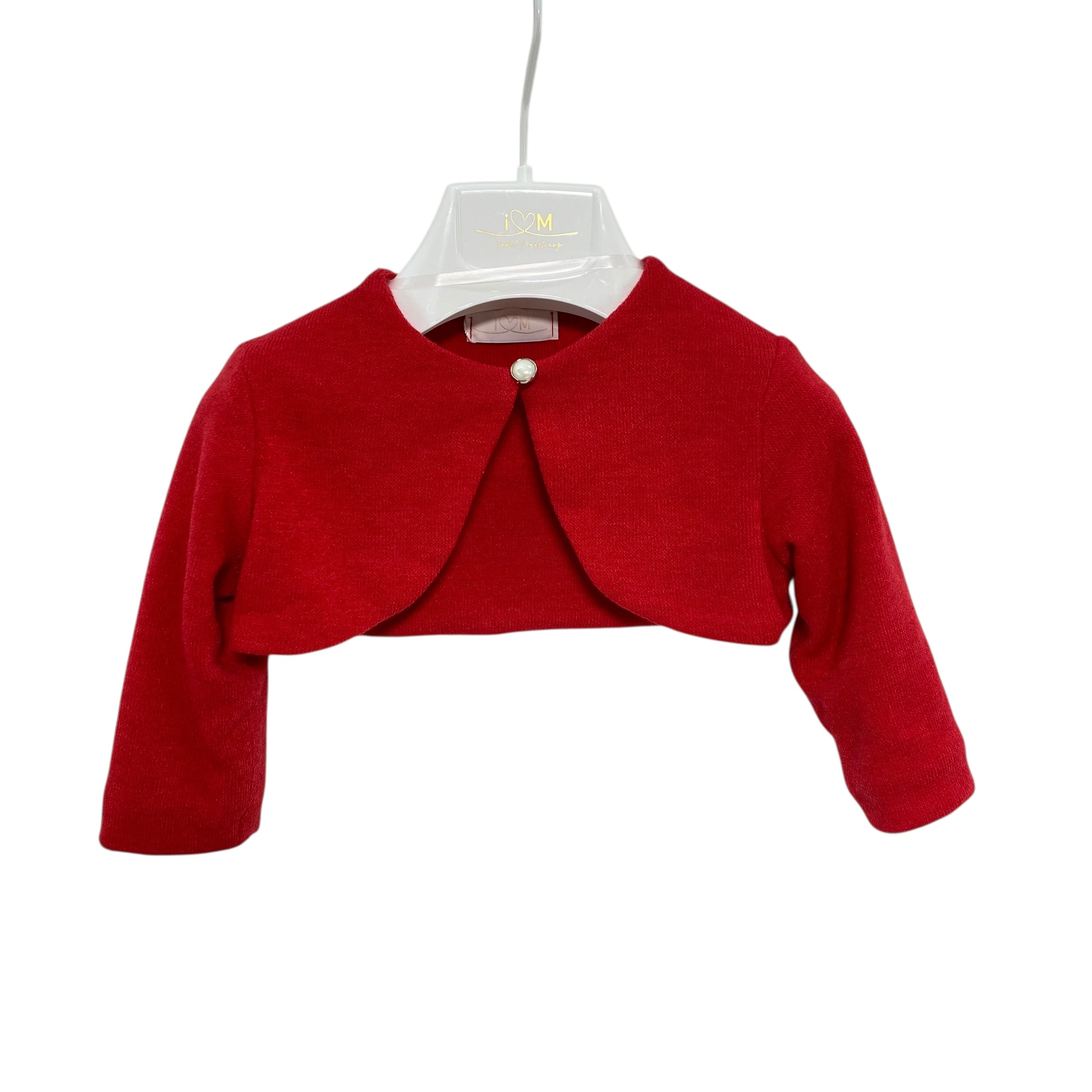 Questo coprispalle in caldo cotone doppio offre comfort e calore ideali per neonate. Dotato di chiusura con bottone in madreperla, aggiunge un tocco di eleganza raffinata a qualsiasi outfit. Perfetto per completare look eleganti e di tendenza, è anche pratico e confortevole per un uso quotidiano.