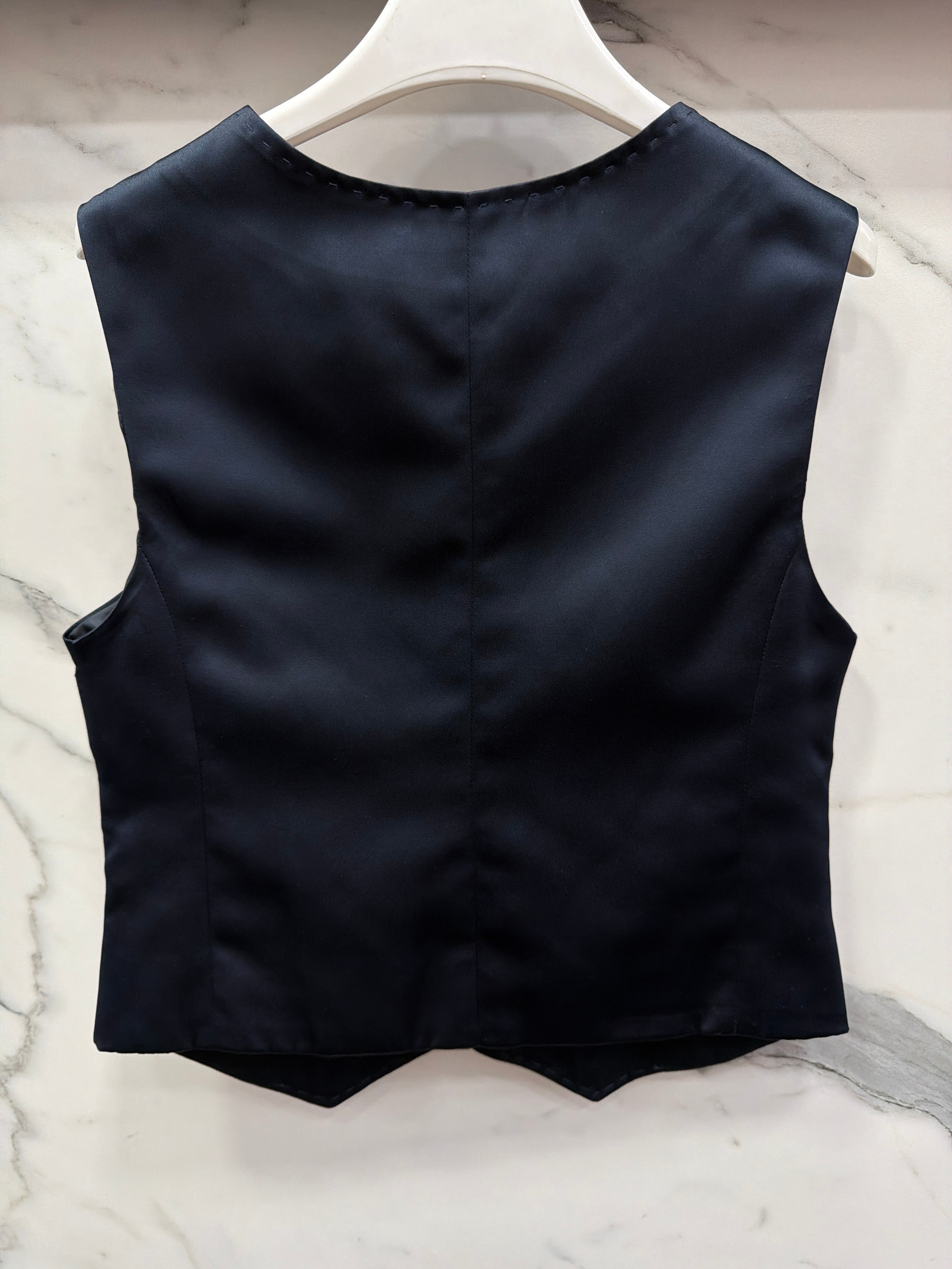 Gilet elegante realizzato in cotone di qualità superiore con retro in raso raffinato. Il design sofisticato presenta impunture precise che aggiungono dettagli di pregio al capo. Perfetto per occasioni speciali o per elevare lo stile quotidiano del bambino, questo gilet combina comfort e eleganza senza compromessi. La combinazione di materiali nobili garantisce una vestibilità impeccabile e una durabilità nel tempo. Un capo versatile che si abbina facilmente con capi della collezione, ideale per chi ricerca qualità e stile per i propri figli.