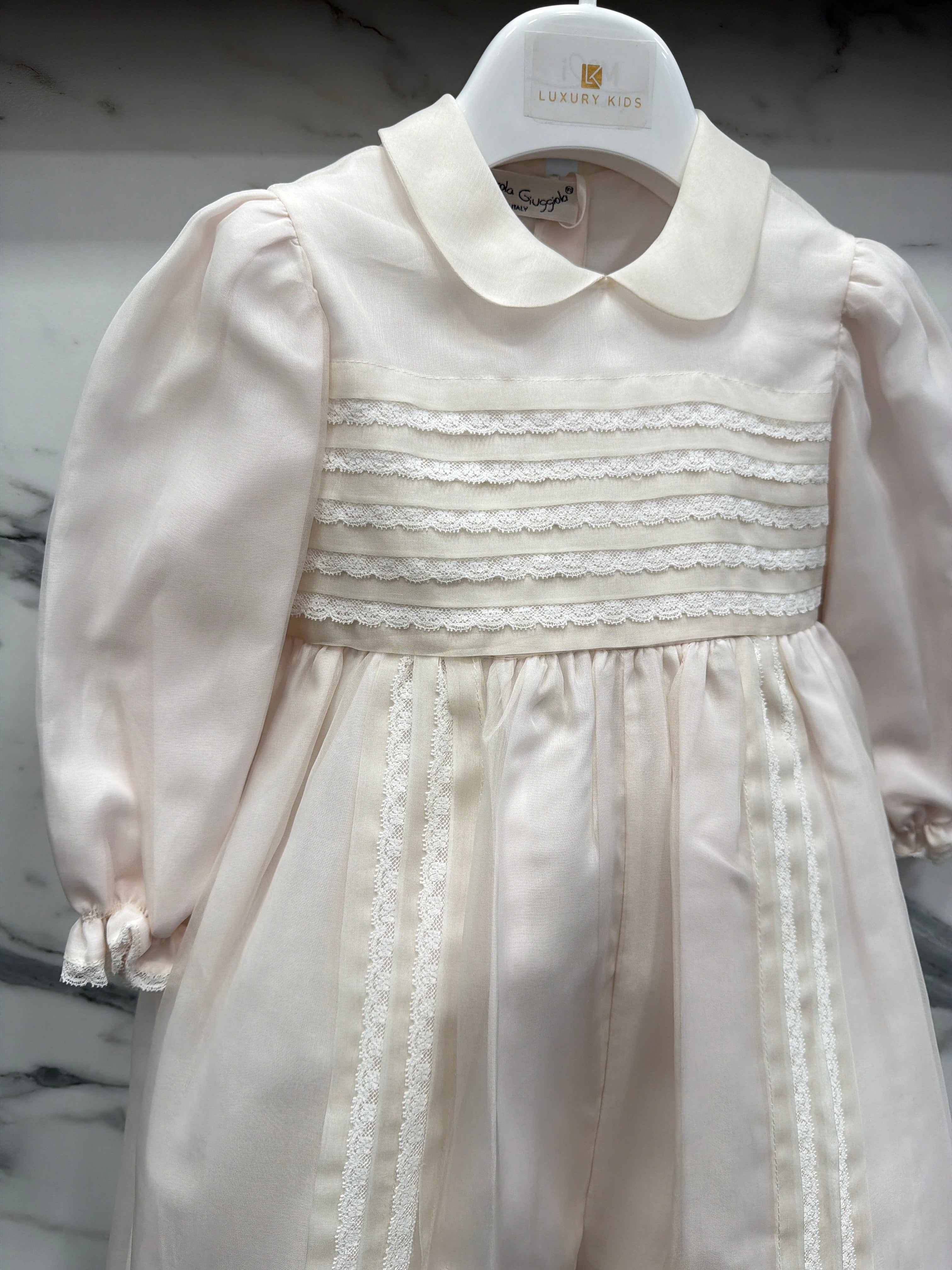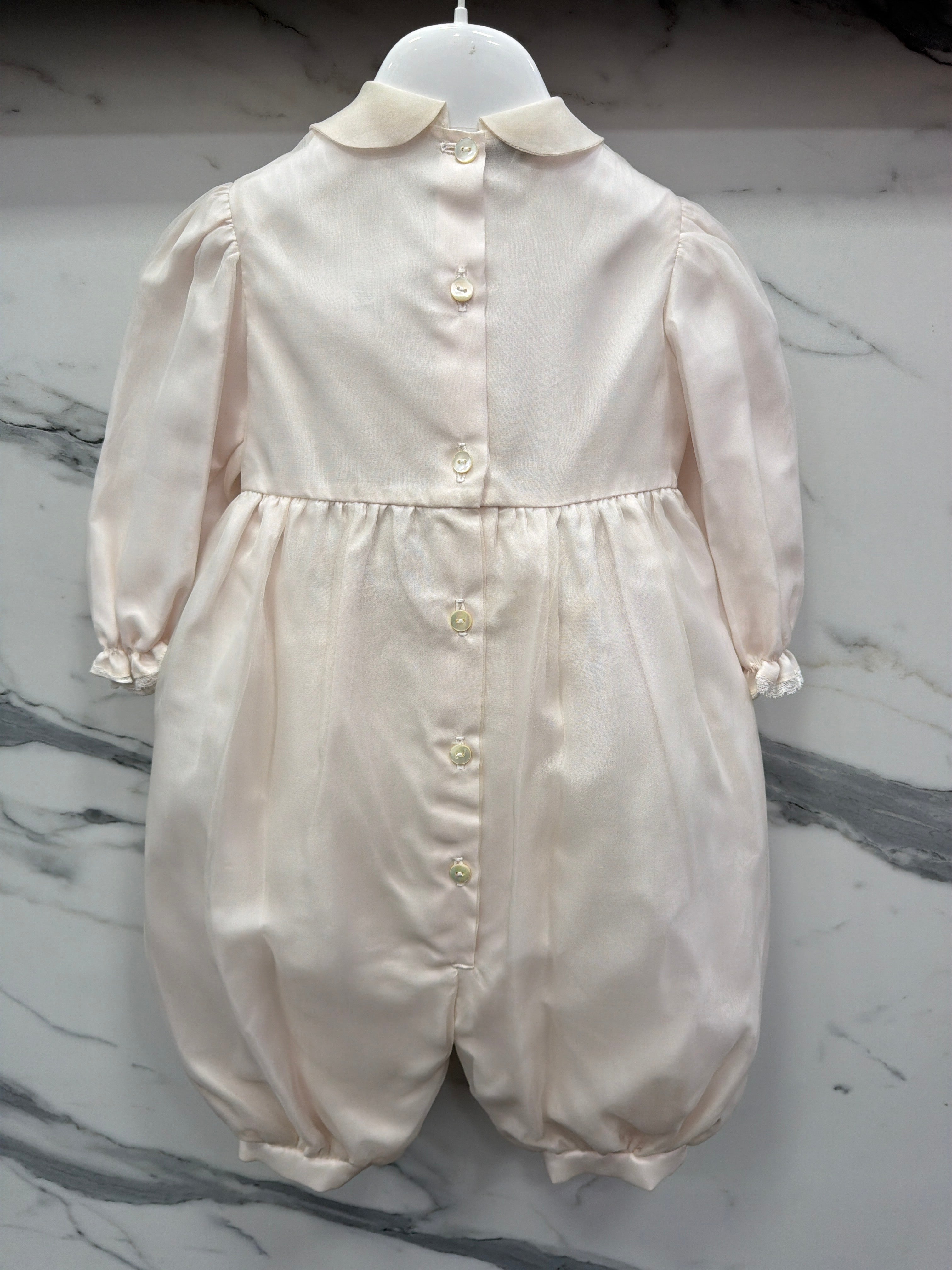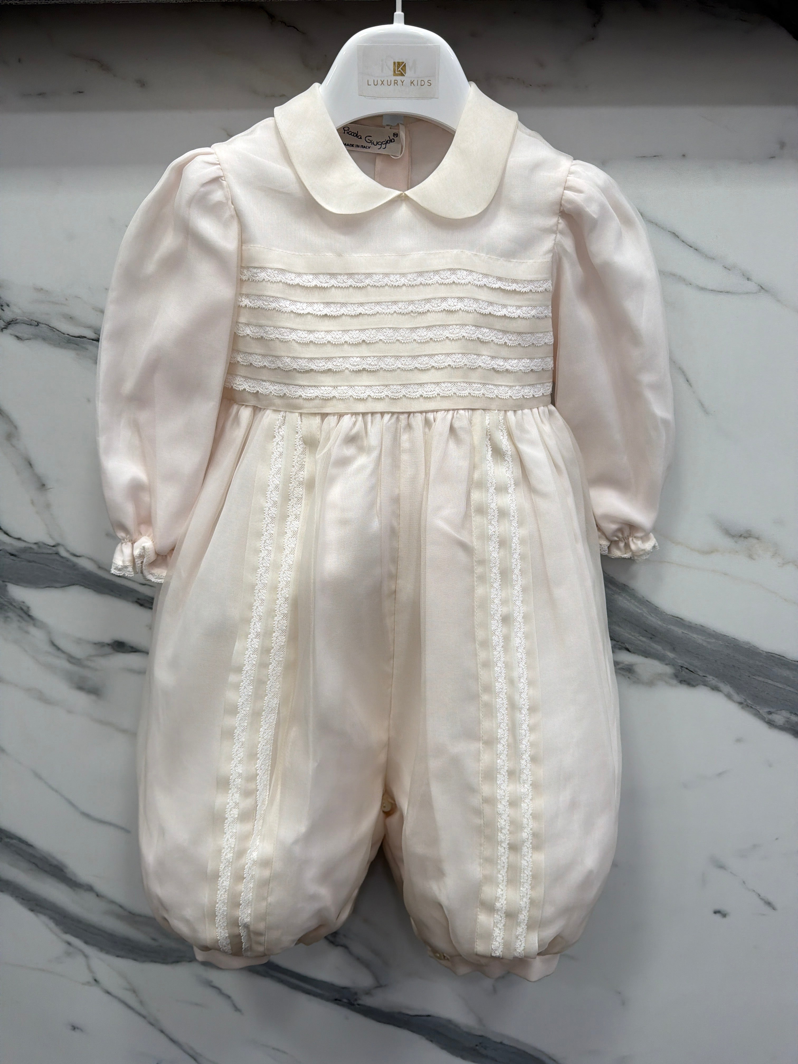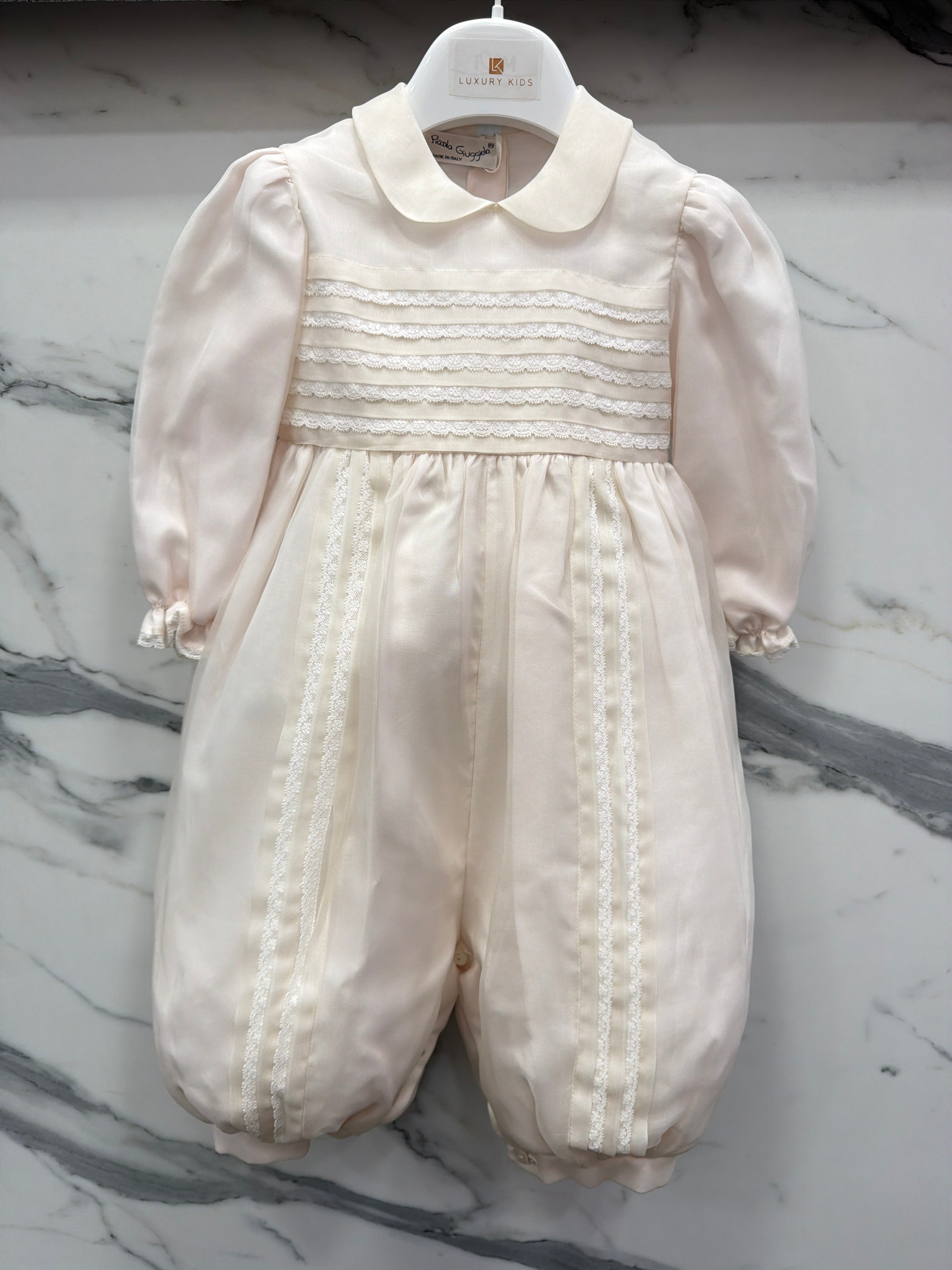 Pagliaccetto elegante battesimale in organdis di seta e pizzo.