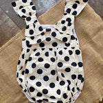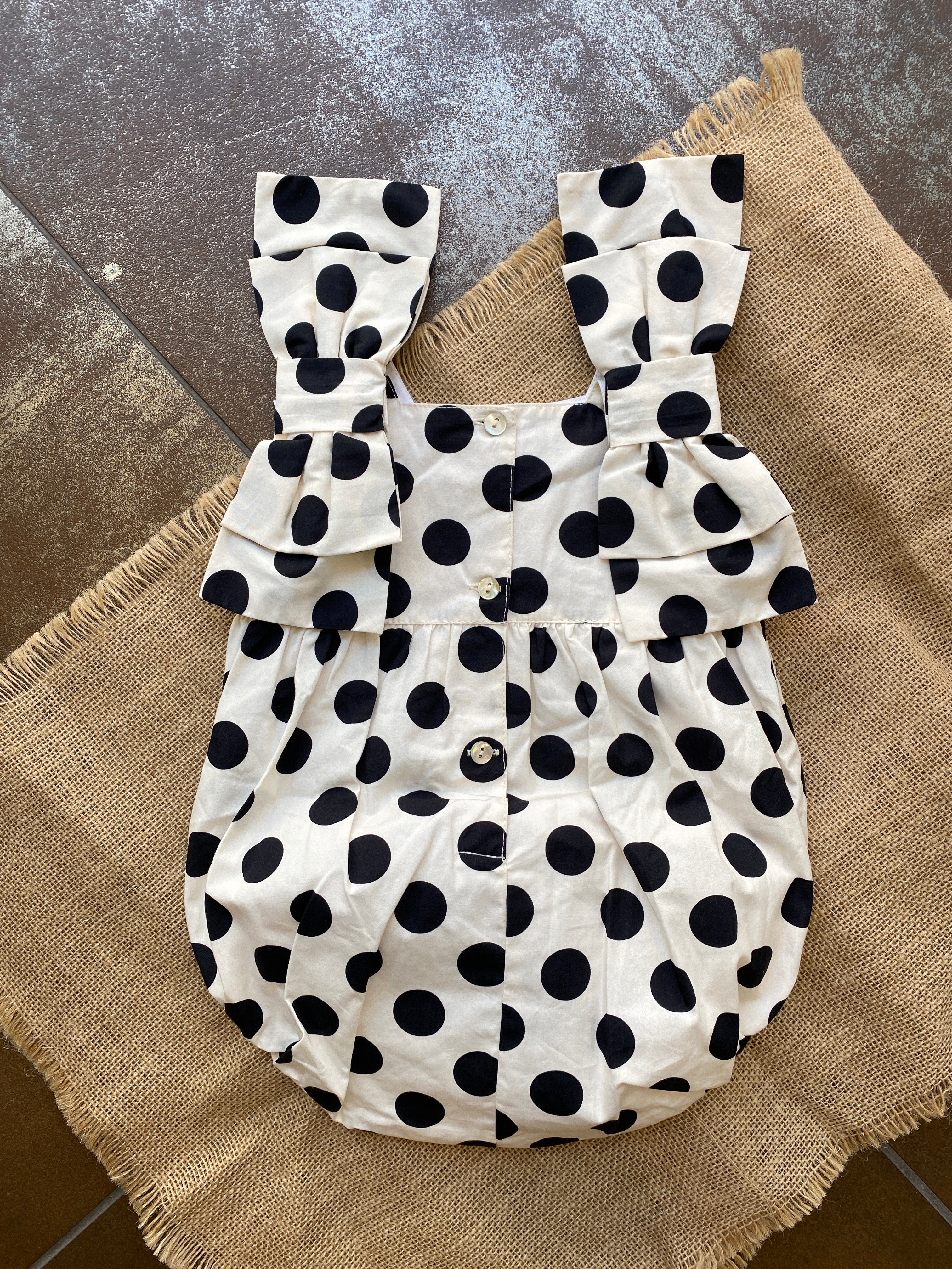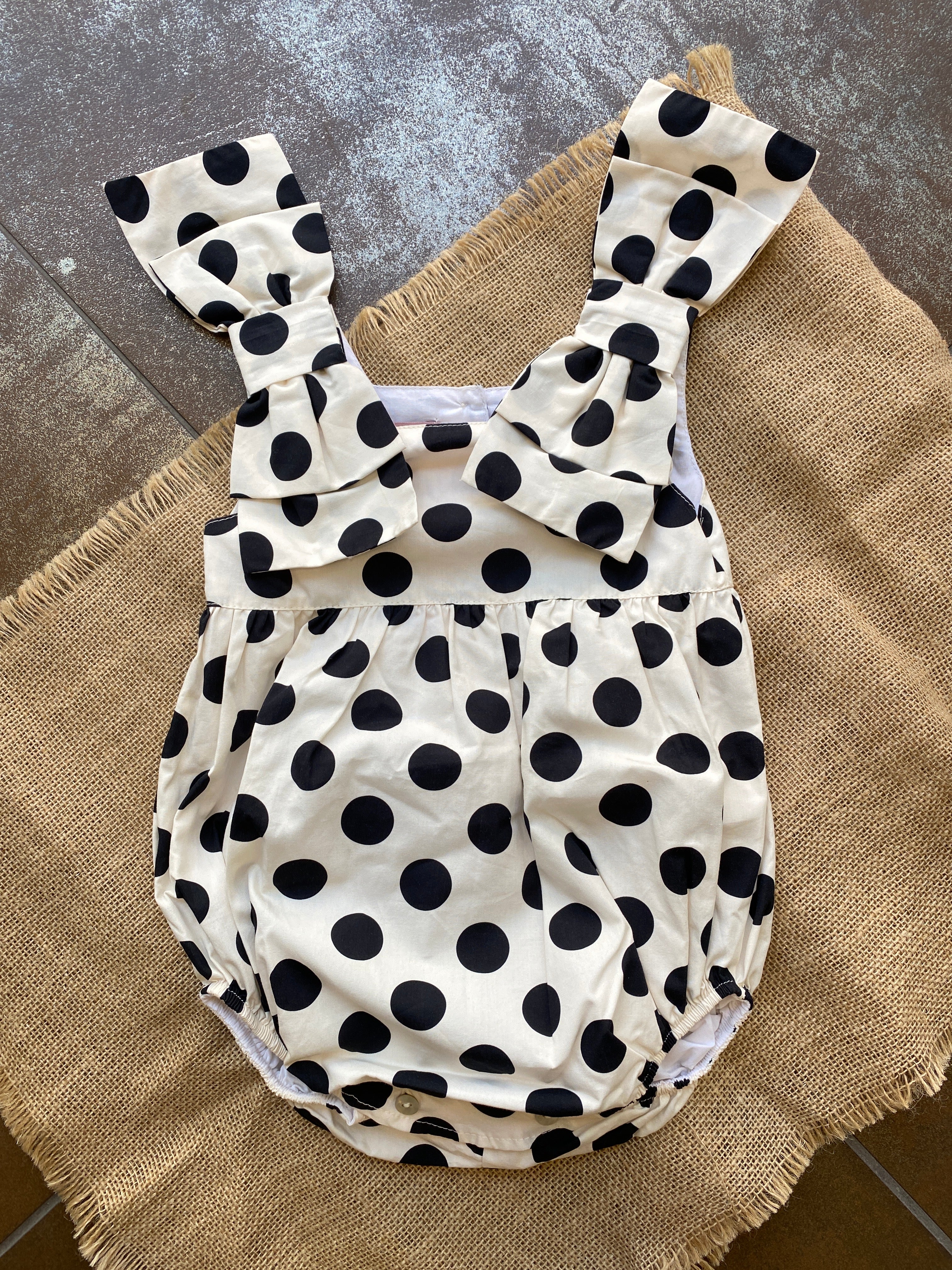 Pagliaccetto intero in cotone, fantasia a poise. (base panna e poise nero)