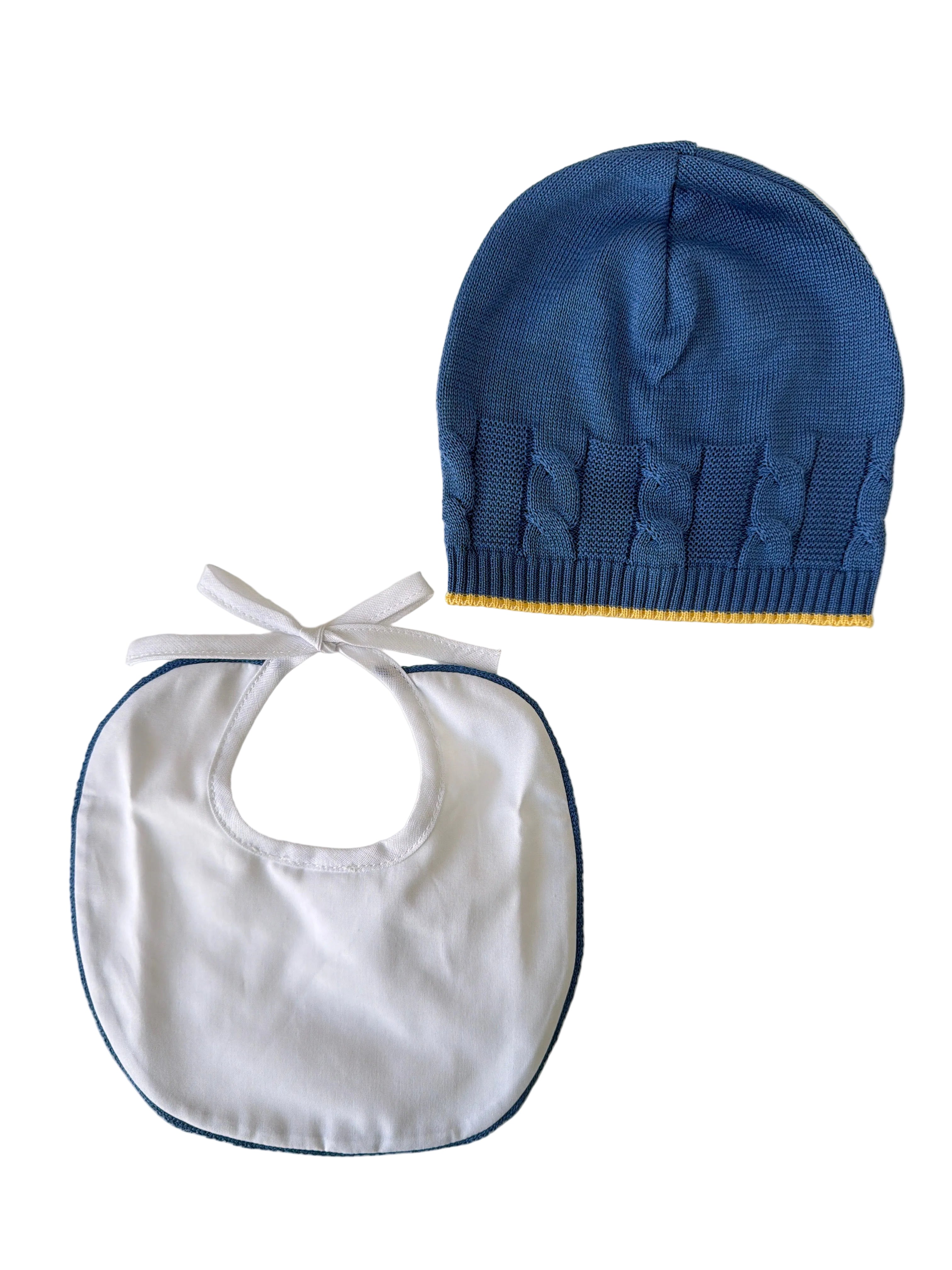 Delicato set coordinato per neonato composto da cappello in filo e bavetta in cotone. Perfetto per proteggere il piccolo dal sole mantenendo uno stile raffinato. Realizzato con materiali morbidi e traspiranti, ideale per le giornate primaverili ed estive. Un regalo lussuoso e pratico per i genitori che desiderano il meglio per il loro bambino.